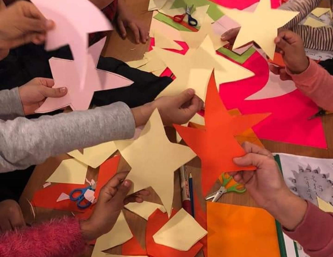 Kreativität, Gestalten, Materialien, Zusammenarbeit, Fantasie, Handwerk, Freude.